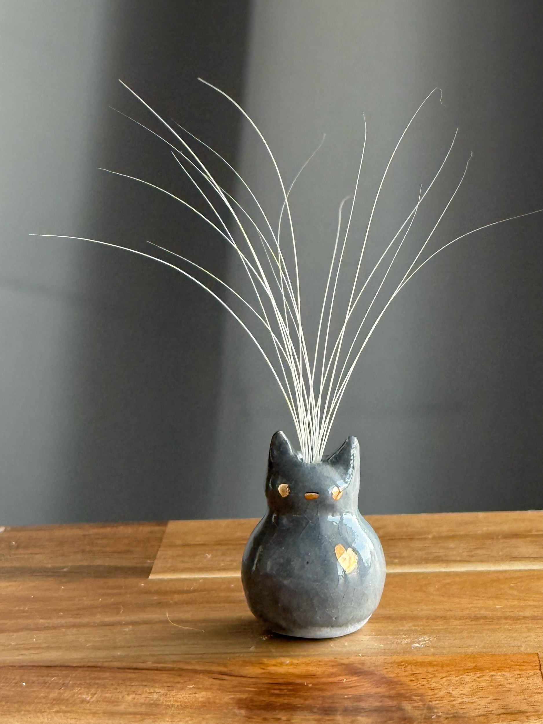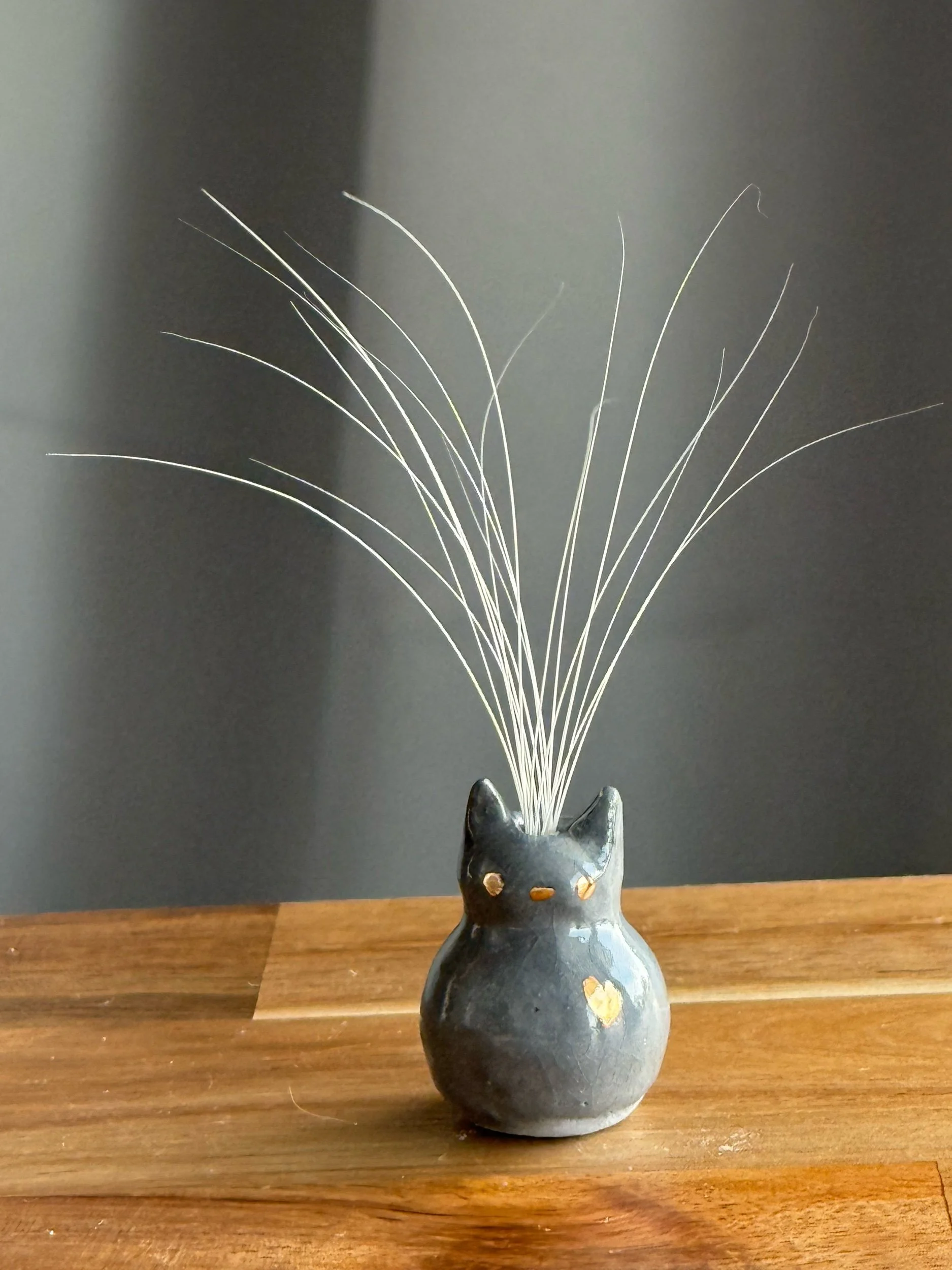 An adorable little vase to collect your kitty’s whiskers! Handmade on my pottery wheel, glazed, and fired - then painted with 24k gold luster and fired again.