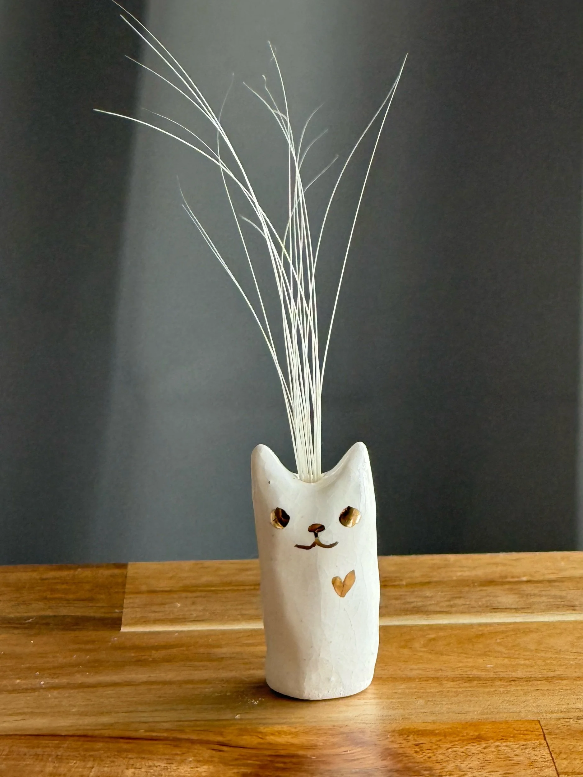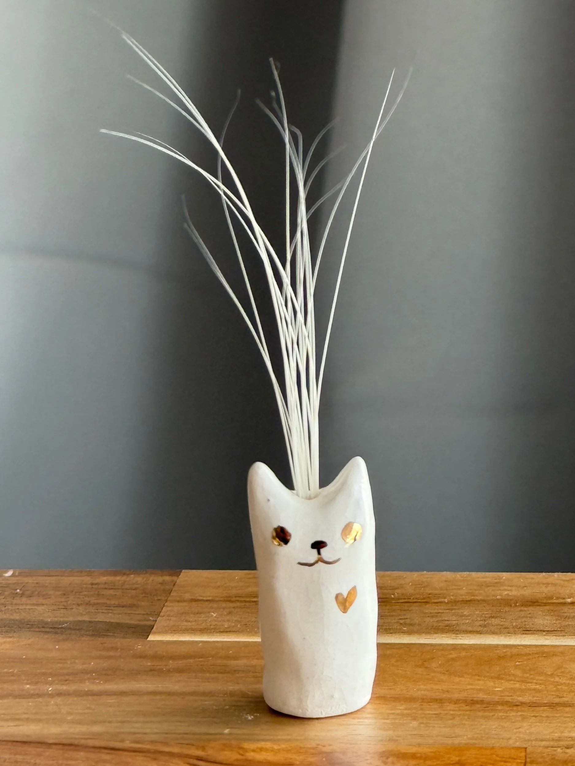 An adorable little vase to collect your kitty’s whiskers! Handmade, glazed, and fired - then painted with 24k gold luster and fired again.